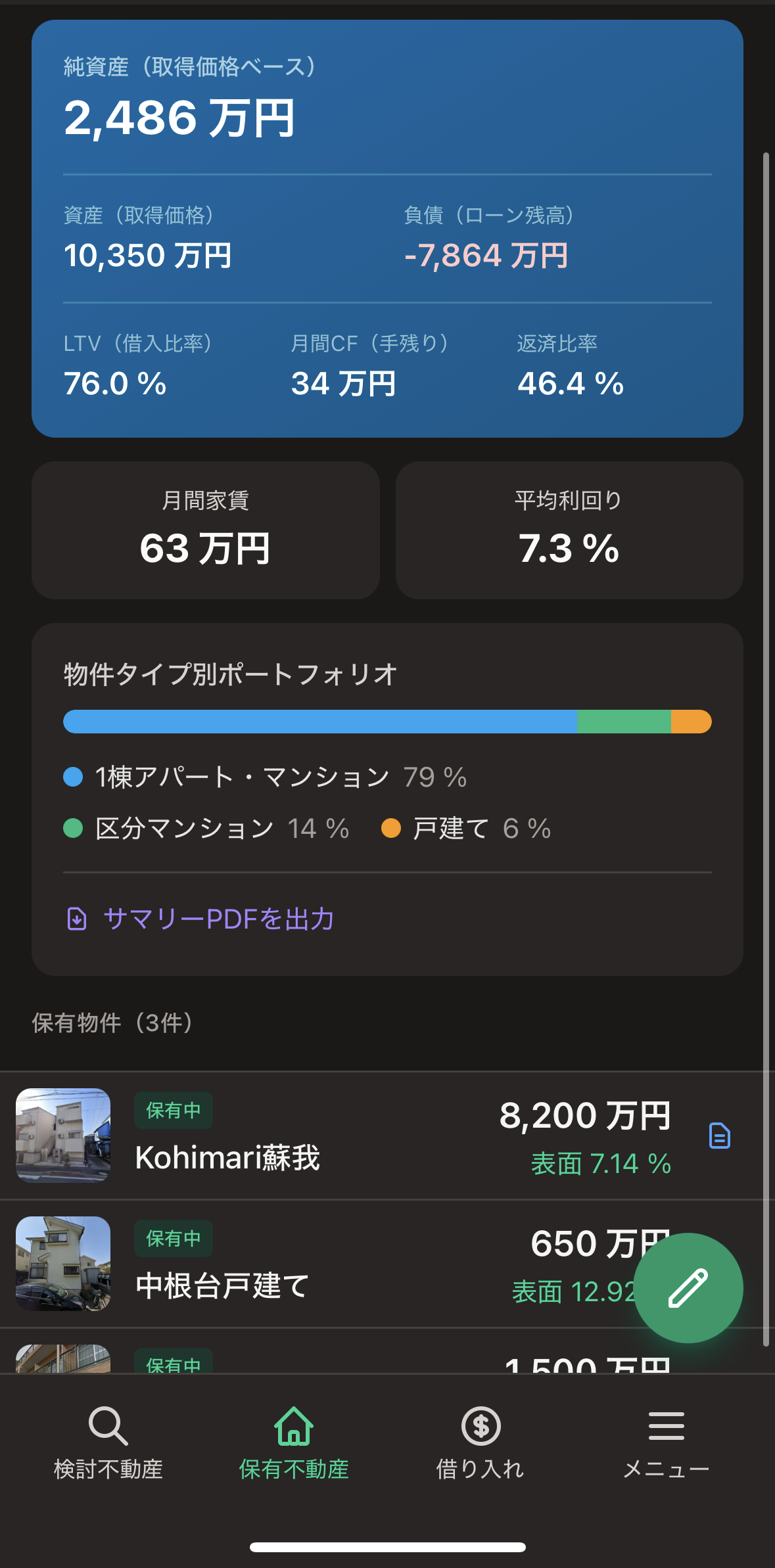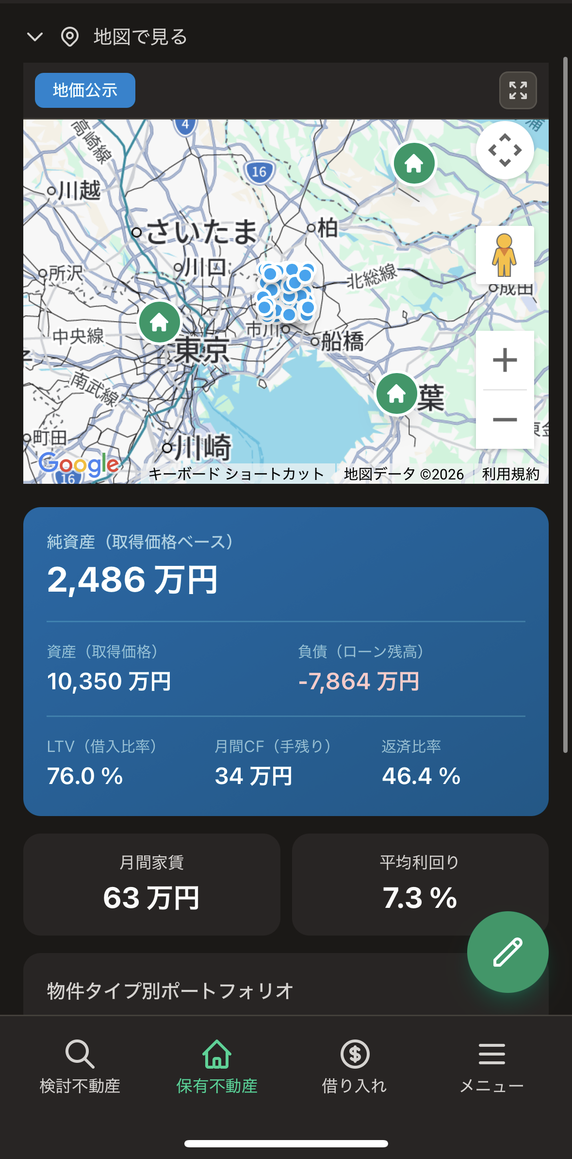 資産・負債・CF・利回り。 あなたのポートフォリオを、ひと目で。